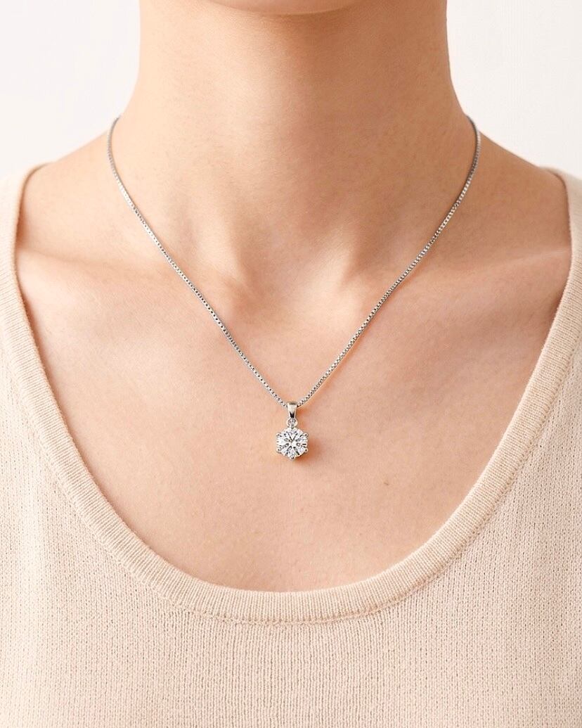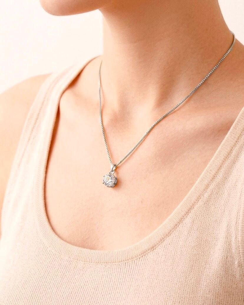 「光(Lumière)」をテーマにデザインされた、一粒石のソリテールネックレス。