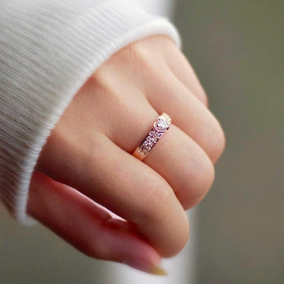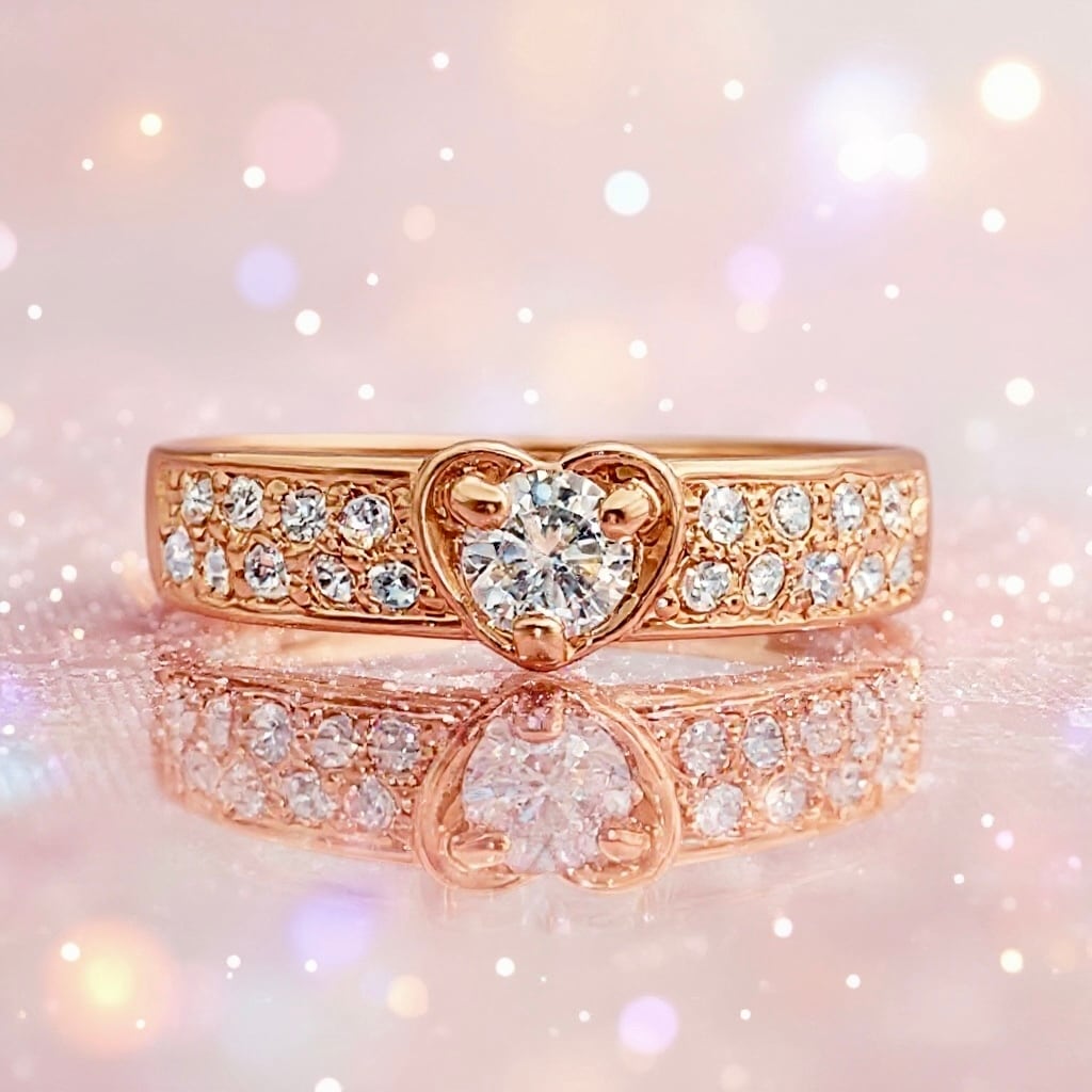 中央の立体的なハートモチーフは見る人の視線を釘付けにし、指先にロマンティックな輝きをプラスします。